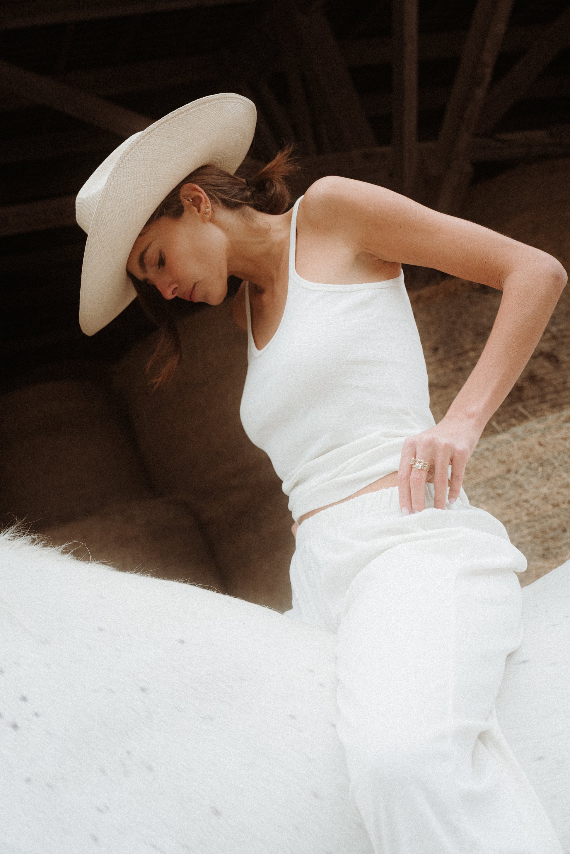 Débardeur 100% coton biologique de pointelle. Fines bretelles et encolure ronde. Confort et maintien parfait. Existe en 2 coloris.