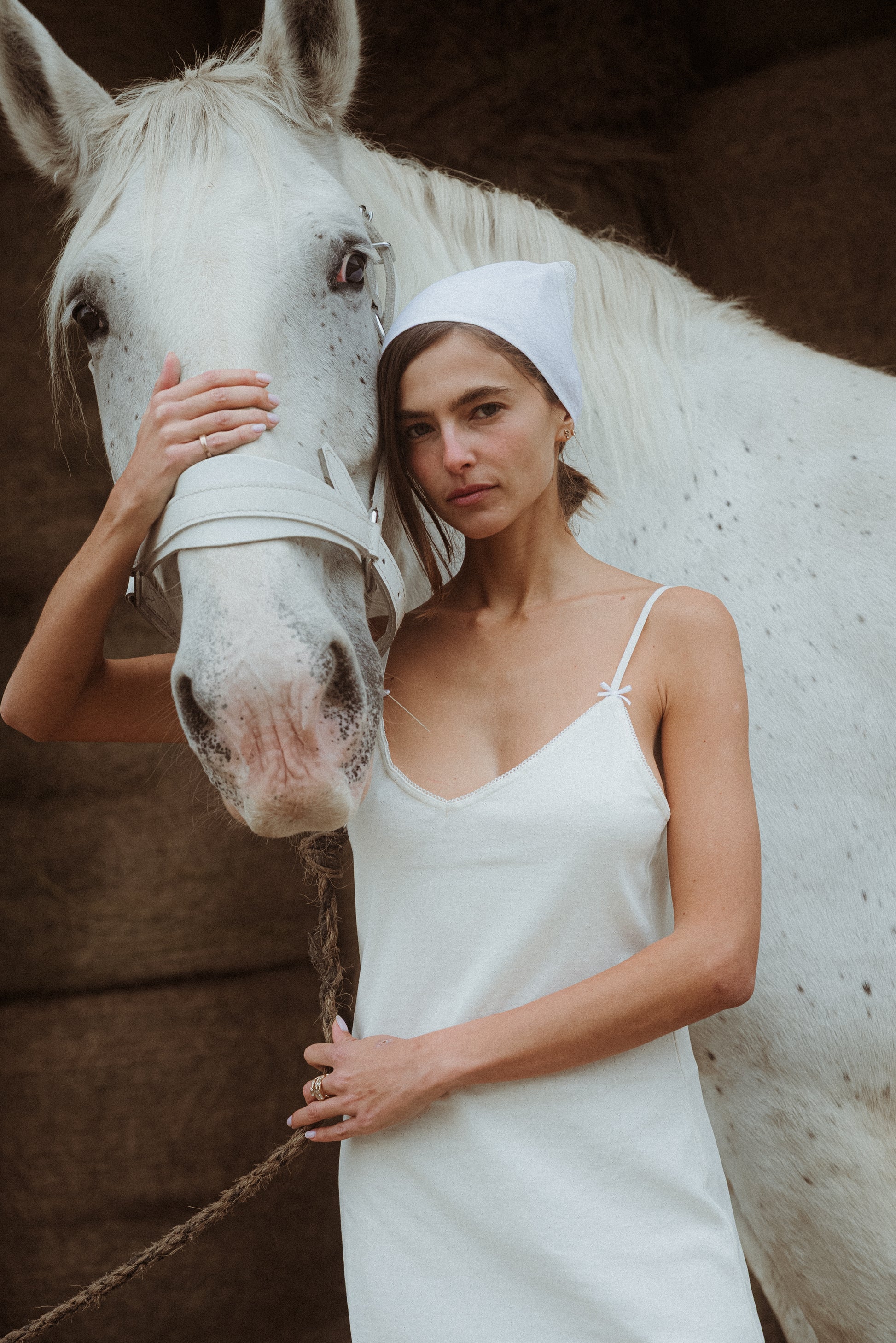 Nuisette 100% coton biologique de pointelle - bord à picot & détail petit noeud. Coupe mi jambe. Bretelles élastiques offrant confort et maintien. Existe en 2 coloris.